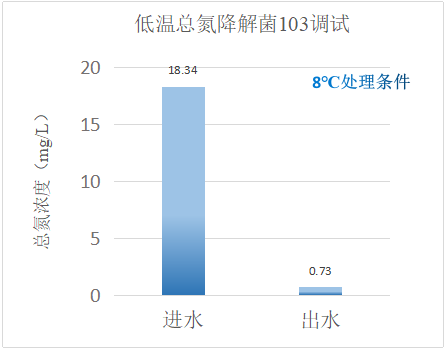通過技術(shù)人員現(xiàn)場投加低溫總氮降解菌103,再配合現(xiàn)場生化系統(tǒng)運行條件控制、優(yōu)化,達(dá)到如下效果: